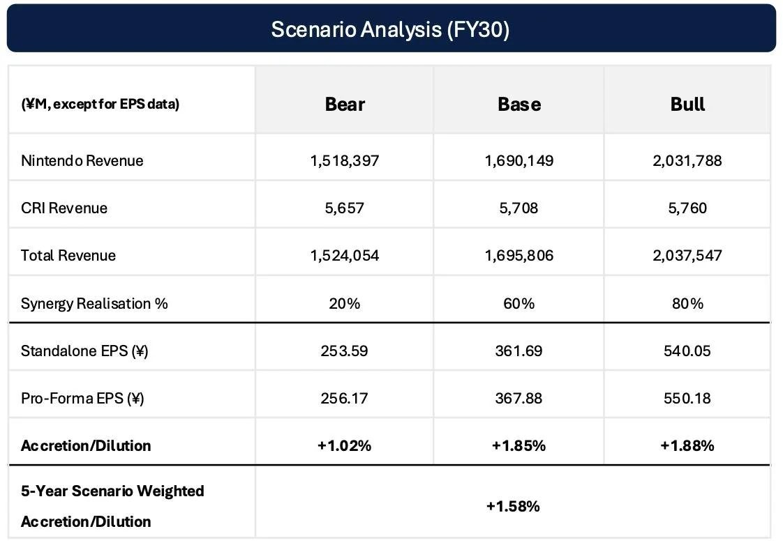 Third, the deal provides financial benefits. Nintendo currently incurs ¥5–30 million annually in CRI licensing fees, which would be eliminated. Additionally, consolidation of overlapping R&D and SG&A functions could be completed within approximately 12 months, creating direct cost efficiencies.